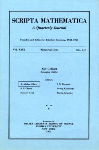 The significance of … Scripta Mathematica, is deepened in these days by the dark cloud of medieval oppression and persecution in a home of Kultur, where books, even in the pure science of mathematics, are being destroyed, as though research, culture, the pursuit of disinterested learning, were the sole prerogative of a single people. It is truly symbolic of American liberalism and the spirit of true scholarship, that the best scientific minds of several lands have united to make possible the issuance and quality of “Scripta Mathematica” published by a college under Jewish auspices. The cooperation of these scholars and friends of learning shows the broadly human nature of true concern for cultural advancement.
